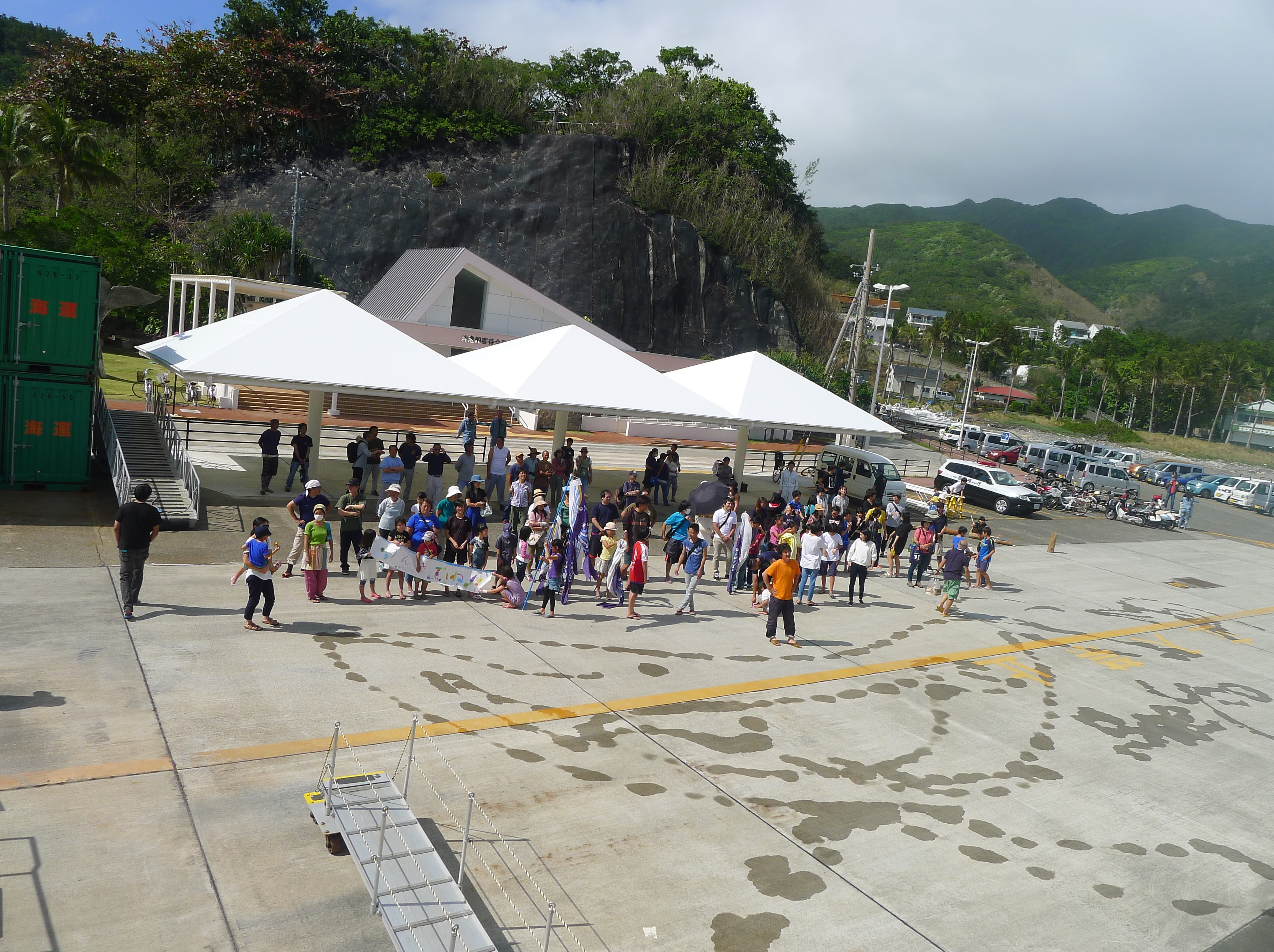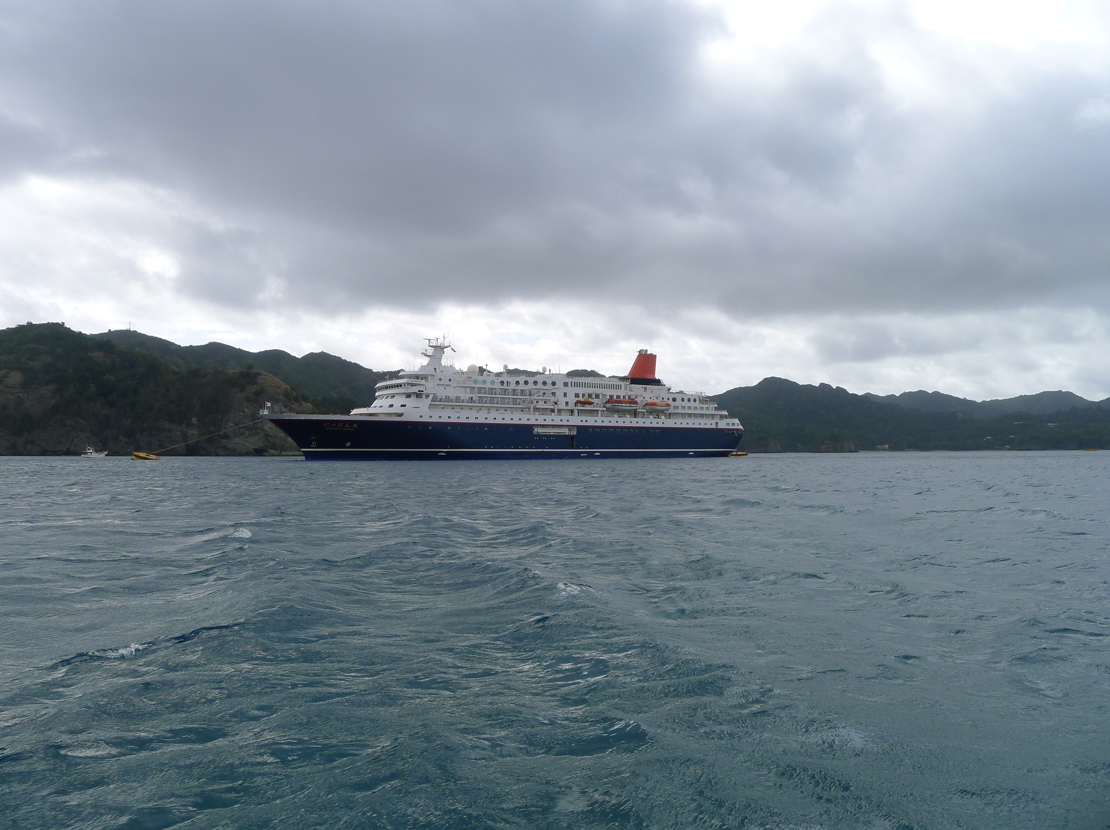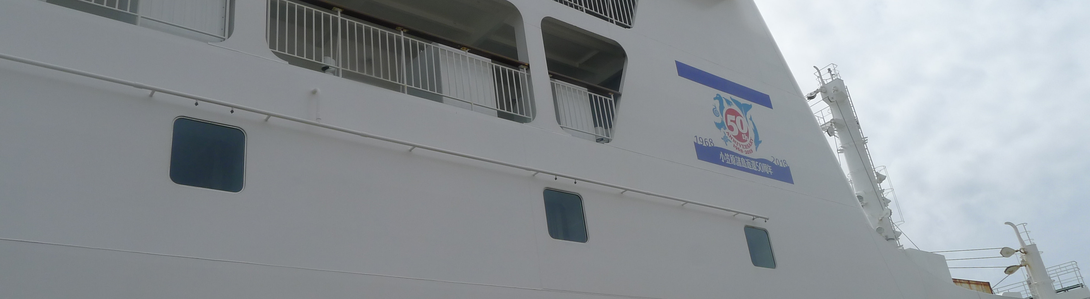 上記写真は、新おがさわら丸、小笠原返還50周年のマーク